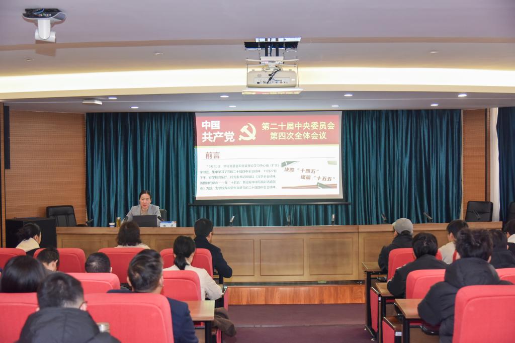 宣讲报告围绕党的二十届四中全会的重大意义、核心内涵与实践要求进行全面深入阐释。田华指出,全会是在我国迈上全面建设社会主义现代化国家新征程、向第二个百年奋斗目标进军的关键时刻召开的一次十分重要的大会。全会审议通过的《中共中央关于制定国民经济和社会发展第十五个五年规划的建议》,是指导未来五年乃至更长时期国家发展的纲领性文件。学习好、宣传好、贯彻好全会精神,是当前和今后一个时期学校的首要政治任务。
