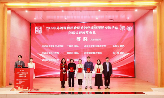 本次活动吸引了来自全国567所院校的3620名教师积极参与,共征集到作品1037件,竞争十分激烈。我院教学团队凭借作品《技通四海,e路领航》在广东、河北、河南、湖北、江苏、上海、天津七省市区域赛中斩获第一名,成功晋级全国现场决赛,并与来自全国的18所高职院校同台竞技。最终,团队凭借扎实的教学设计、鲜明的思政特色与出色的现场表现荣获全国一等奖,充分彰显了我院在外语课程思政建设方面的深厚积累与创新实力。