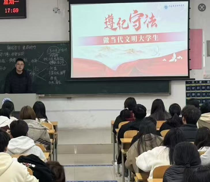 此次班会以学习《中华人民共和国民法典》为核心,紧密结合学生日常学习生活场景,重点围绕校园权益保护、网络行为规范、兼职维权等与学生切身相关的法律问题讲解。班会中,各班辅导员作为主讲人,系统梳理了《中华人民共和国民法典》中与大学生密切相关的条款,如个人信息保护、合同签订注意事项、校园侵权责任认定等内容。辅导员们通过分享校园网贷纠纷、兼职劳务报酬争议等典型案例,深入浅出地解析法律要点,帮助学生明确行为边界,树立“遇事找法、解决问题靠法”的法治思维。