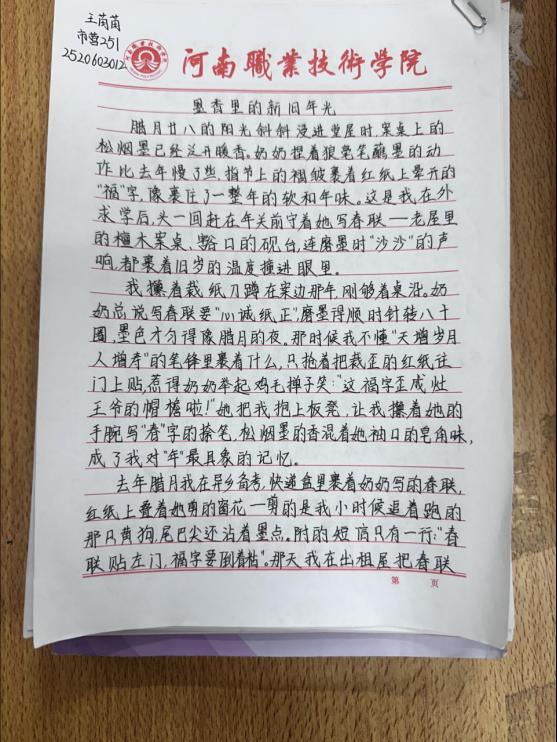 此次迎新年征文活动,不仅为学生搭建了展现自我、交流思想的文化平台,更以文字为纽带,凝聚了学院向心力,丰富了校园文化生活。下一步,学院将持续开展各类特色文化活动,以文化人、以文育人,引导学生在文字创作中感悟成长、凝聚力量,以更饱满的精神状态迎接新一年的挑战与机遇,为学院高质量发展注入精神动力。(供稿 张文龙 审稿 韩雪平)