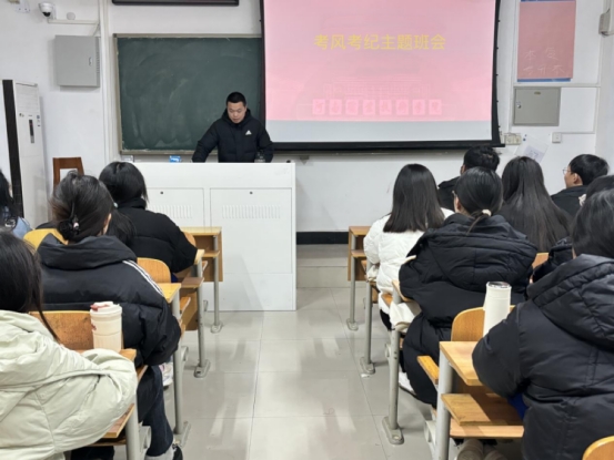 学院各班级率先召开考风考纪专题班会,实现全体学生全覆盖。班会现场,辅导员结合《学生手册》详细解读考场规则、违纪作弊行为界定及对应处分措施,重点剖析了携带违禁物品、利用通讯工具作弊等典型案例,直观呈现违纪行为对学业档案、升学就业的深远负面影响,为学生敲响纪律警钟。同时,辅导员针对“考前资料整理”“考中应急处理”等疑问逐一解答,并给出科学复习规划建议,助力学生以扎实准备从容应考。