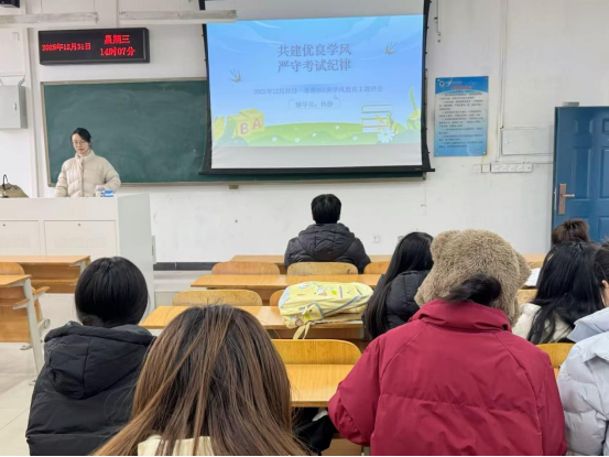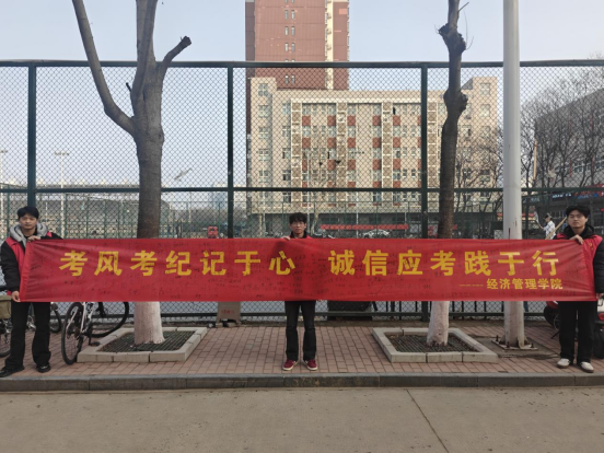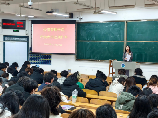 临近期末,为强化学生诚信应考意识,筑牢学风建设防线,营造公平公正的考试环境。近日,经济管理学院以“诚信立身·严谨治学”为主题,系统开展考风考纪主题教育系列活动,通过主题班会、诚信签名、集体宣誓等多样形式,将诚信考试理念深植学子心中。