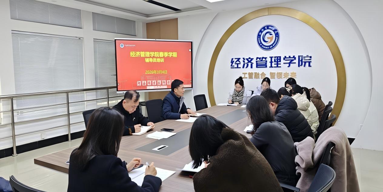 为深入贯彻落实立德树人根本任务,持续夯实辅导员队伍专业化、职业化建设根基,全面提升学生思想政治教育、日常管理与服务工作的精准度和实效性,3 月 4 日,经济管理学院于笃行楼 610 会议室举办 2026 年春季学期辅导员专题培训。学院党总支书记马金伟作专题辅导报告,全体专兼职辅导员集中参训,在学习交流中汲取育人智慧,凝聚学生工作奋进合力。