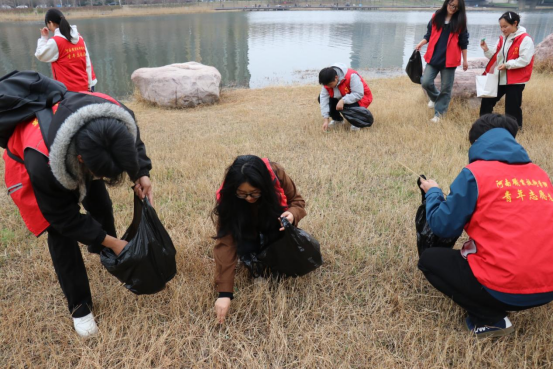 活动前期,学院做好统筹部署与安全保障,对志愿者开展岗前动员与环保知识培训,明确活动流程、分组分工与安全规范,提前备齐垃圾夹、环保垃圾袋等清洁工具,为活动顺利开展筑牢基础。活动现场,志愿者们以小组为单位,沿着贾鲁河河道沿线有序开展清洁行动。大家不怕脏、不怕累,弯腰俯身、默契配合,对河滩草丛、堤岸缝隙、步道周边藏匿的塑料瓶、食品包装袋、烟头、废弃杂物等各类垃圾进行 “地毯式” 清理,不放过任何一处卫生死角。