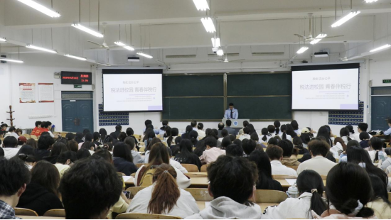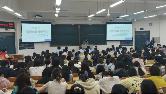 活动现场,税务局三位宣讲专家紧扣税收知识宣讲核心,贴合青年学生认知特点与学习需求,带来了内容详实、逻辑清晰、深入浅出的专题宣讲。宣讲内容覆盖税收基础理论、核心税种规定、实务风险防范全维度,既系统梳理了税收的起源与本质、核心职能与价值意义,深刻阐释税收 “取之于民、用之于民、造福于民” 的根本属性;又聚焦增值税、企业所得税、个人所得税等现行主体税种,详细解读各税种的征收范围、核心规定与征管要求,结合民生相关典型案例,将专业严谨的税收政策转化为通俗易懂的内容,拆解日常场景中的税收逻辑,有效填补了师生的税收知识盲区;同时围绕日常涉税实务规范与风险防范展开细致讲解,针对发票管理要求、纳税申报基本流程、常见涉税违法违规行为的法律后果、生活中高频涉税误区等内容逐一厘清,清晰划定税收法律红线,引导在场师生自觉规避涉税风险,切实强化了依法诚信纳税的思想自觉与行动自觉。
