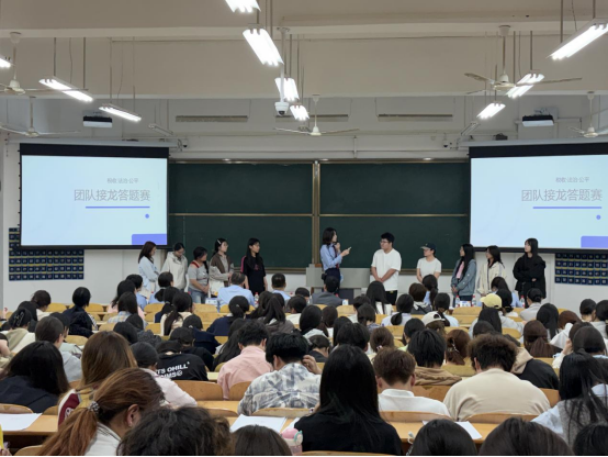 宣讲结束后,现场开展了税收知识互动接龙趣味游戏。10名学生分为两组,围绕办税渠道、税种分类、税收宣传口号、个税计算常识等核心知识点展开激烈比拼。现场气氛热烈高涨,学生参与积极性十足,以寓教于乐的形式彻底打破了传统宣讲的单向灌输模式,让税收知识在趣味比拼中真正入脑入心。